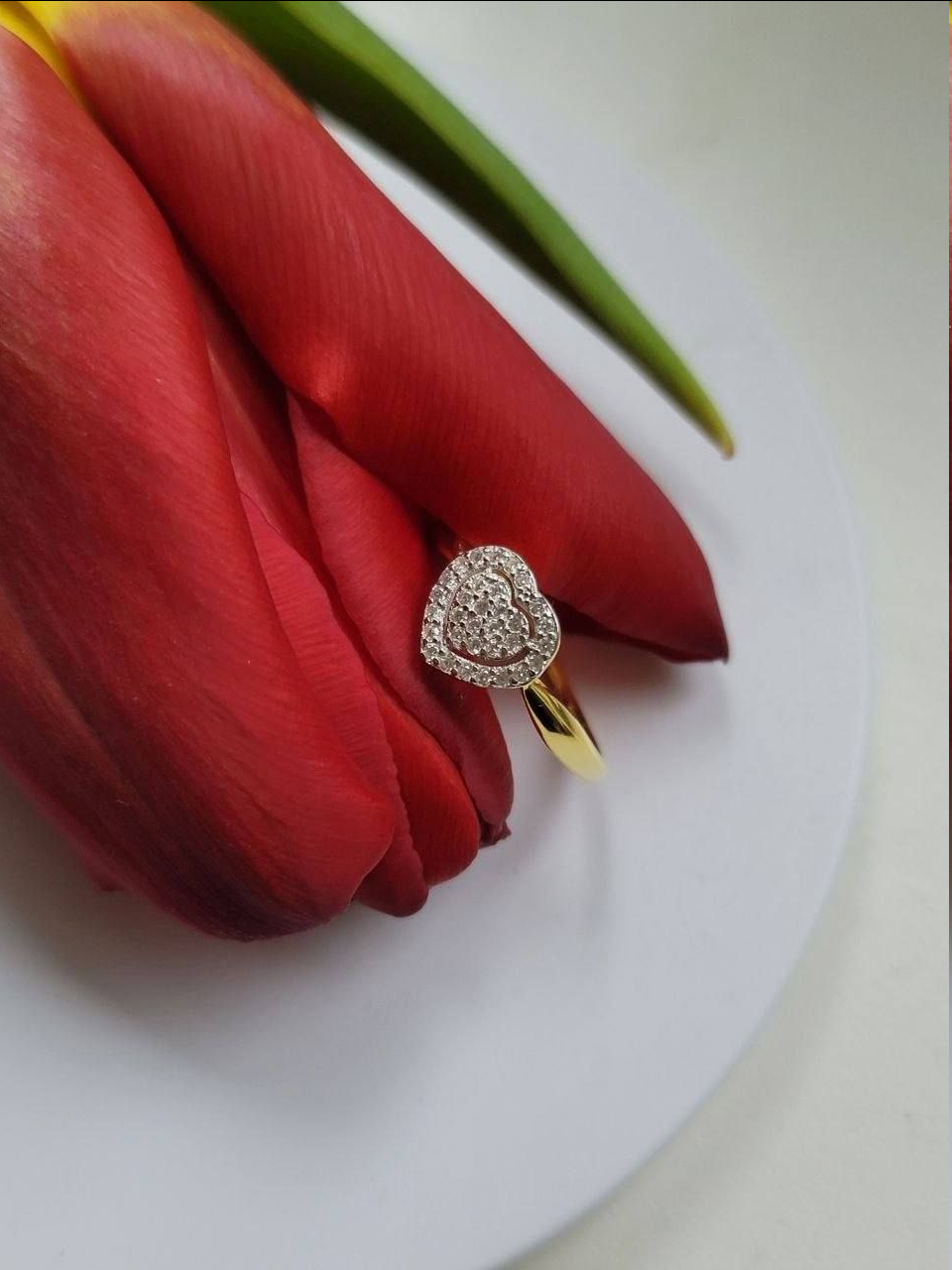 Позолоченное кольцо с сердечком из цирконов
